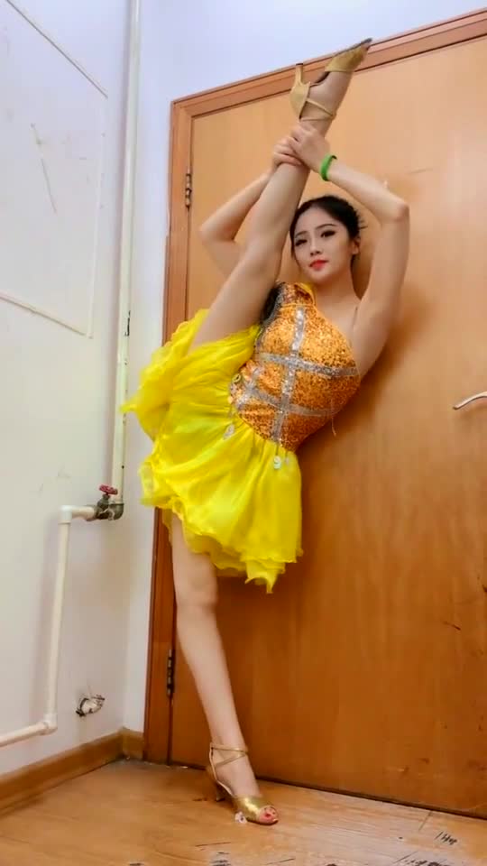 跳舞蹈的就是不一样,就连一字马的动作都这么到位