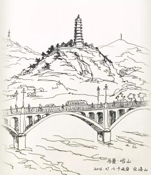 手绘宝塔山画延安景区简笔画简笔画延安宝塔山东关大桥延安宝塔山简笔