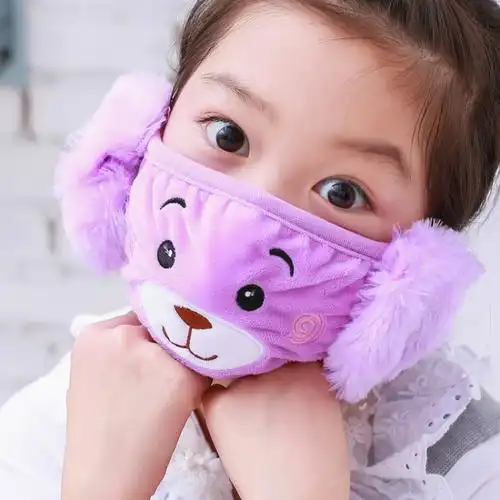 韩版卡通可爱男女儿童护耳口罩纯棉透气秋冬季防保暖防雾霾面罩