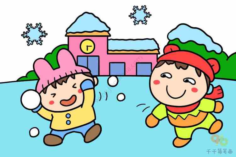 strong>打雪仗 /strong>的孩子们简笔画冬日里的欢乐儿童画简笔画
