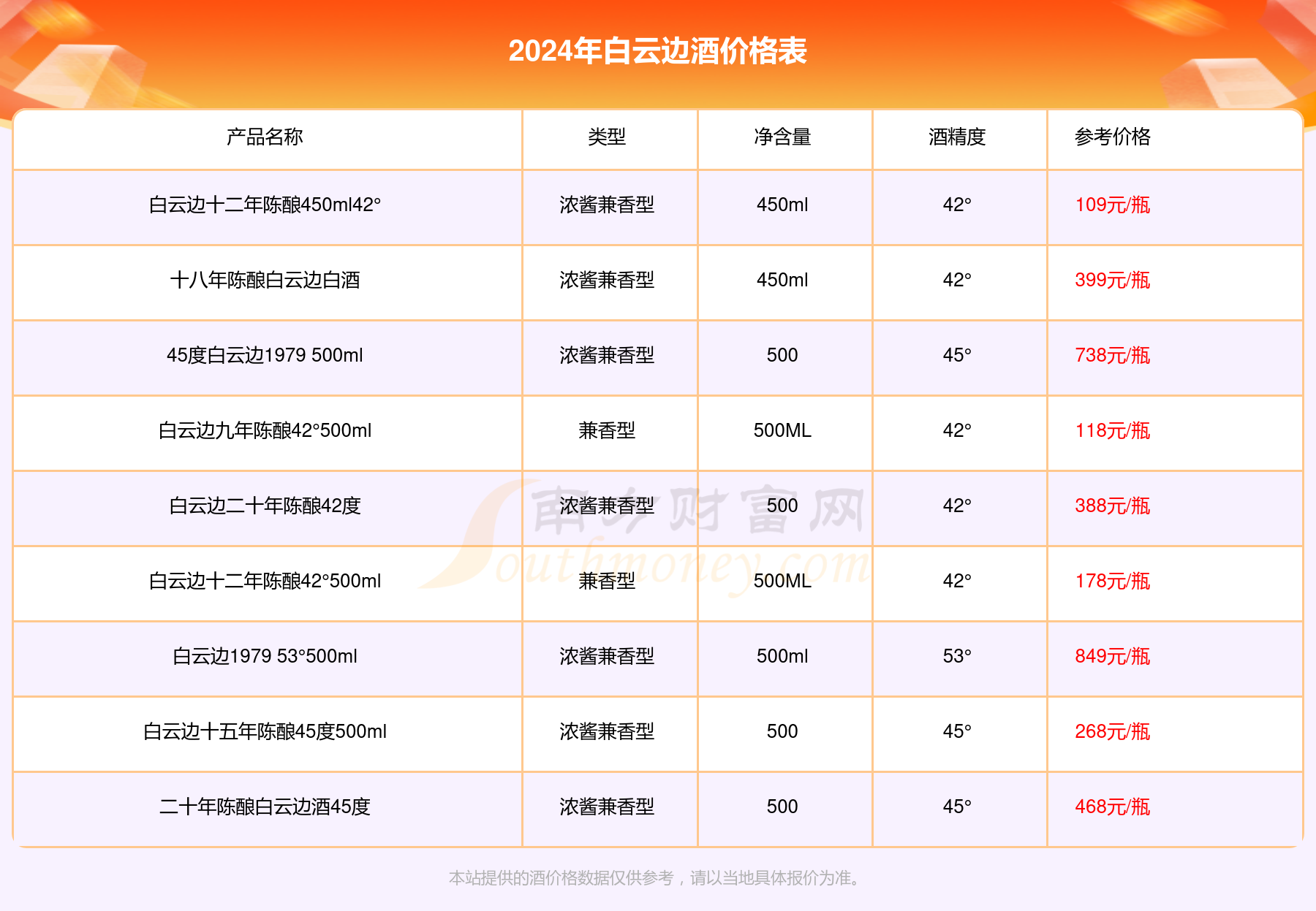 白云边十五年陈酿42度450ml酒价格表2024基本信息一览