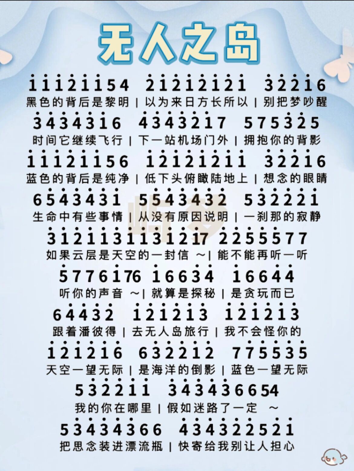 简谱版,无人之岛-任然〖数字简谱〗 简谱版钢琴谱,无人之岛-任然