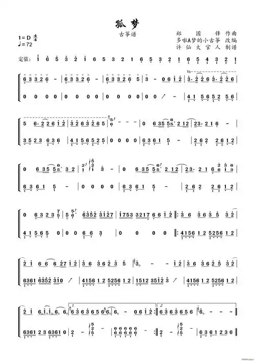 曲谱分享|《孤梦》纯筝版_古筝_娱乐_音乐