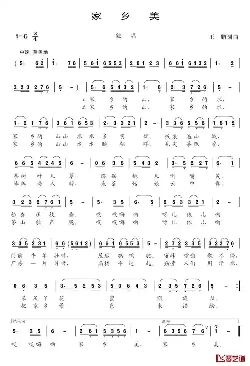 家乡美歌曲简谱