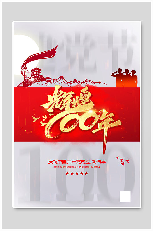 七一建党节宣传红色创意海报(3300*4950px 150 dpi )psd模版下载