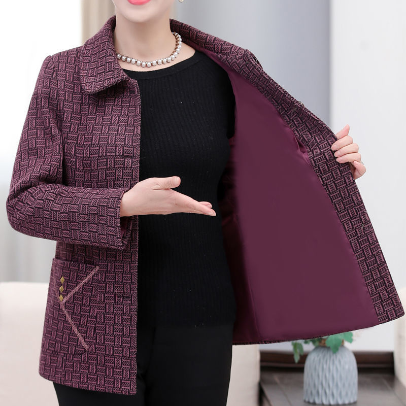 中老年人女装奶奶春秋外套60-70岁妈妈秋装格子上衣老人婆婆衣服