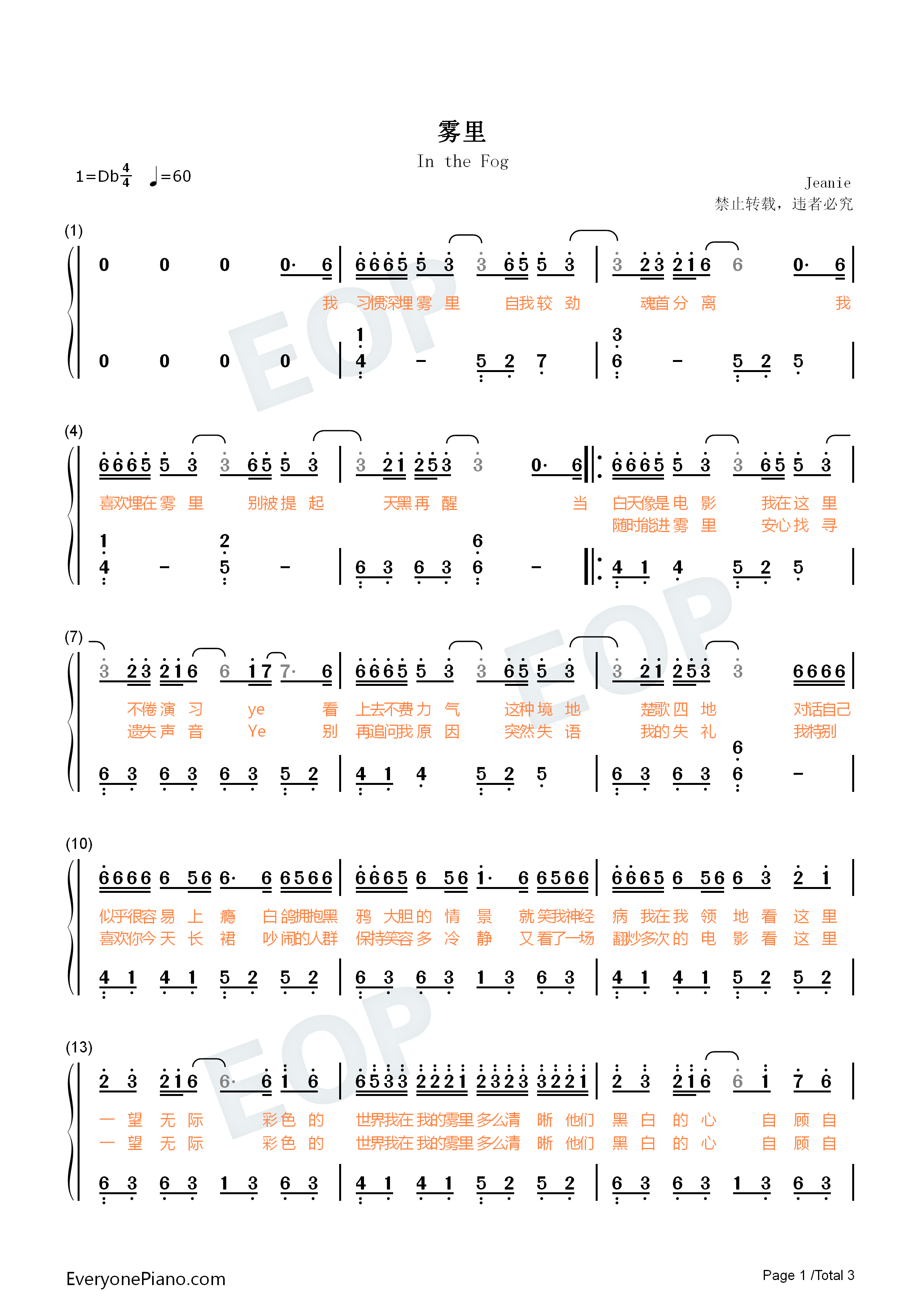 雾里c调六线pdf谱吉他谱-虫虫吉他谱免费下载