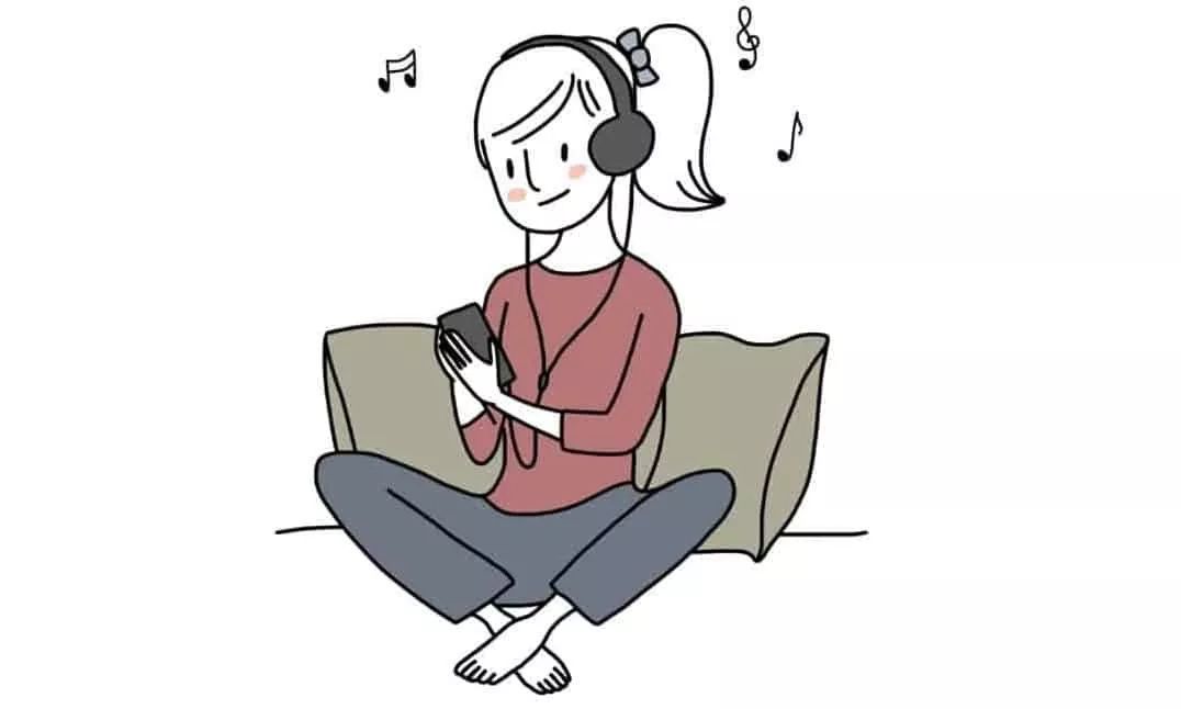 室内家居卡通人物戴耳机听音乐插画png素材音乐元素