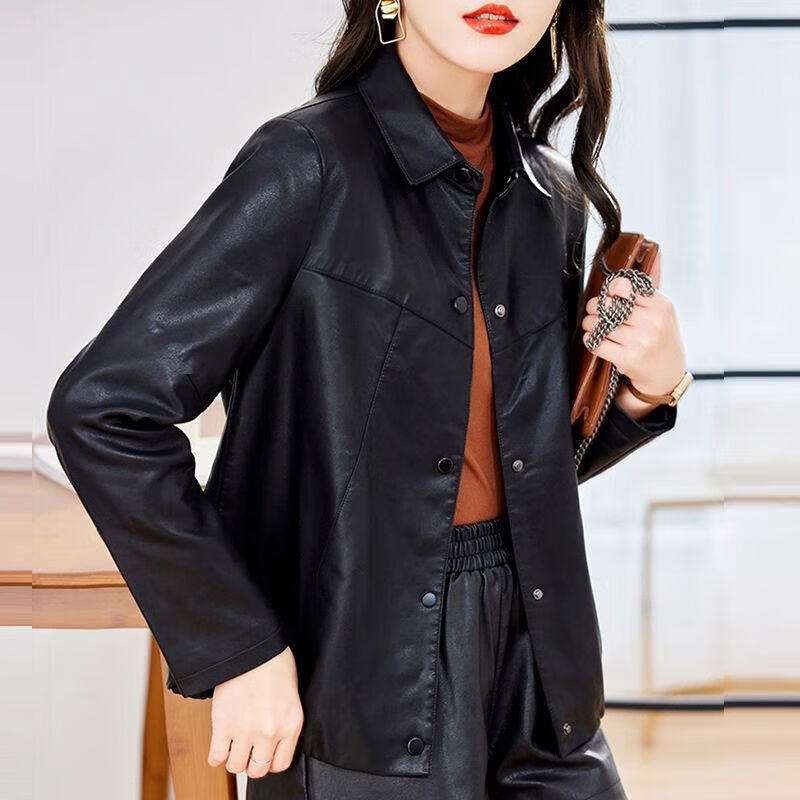 永立弘真皮皮衣女士短款真皮夹克海宁绵羊皮修身显瘦百搭机车服短外套