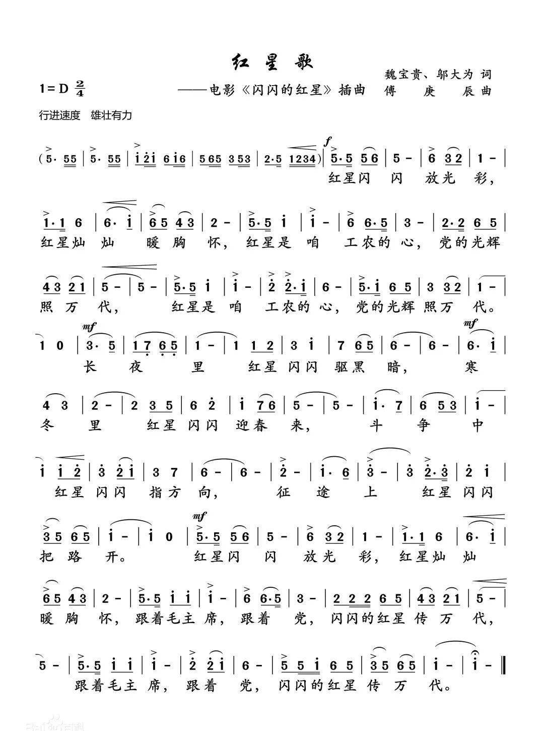 红星闪闪歌谱和歌词 完整版