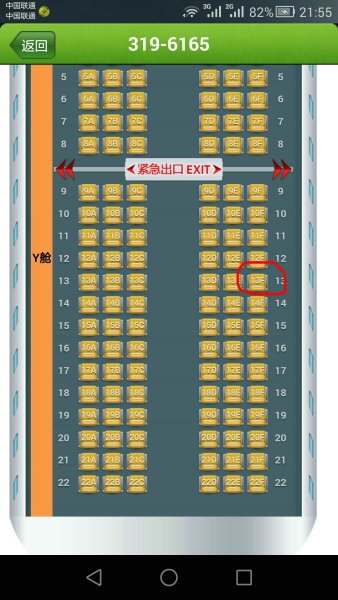 zh9728飞机上13f是哪个座位