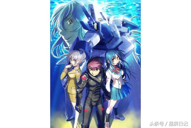 图中可以看到男主角相良宗介和女主角千鸟要以及泰蕾莎三人站在前方