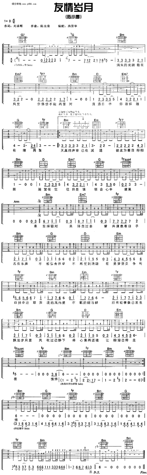 友情岁月吉他谱,友情岁月简谱_我爱歌谱网