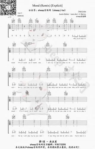 《mood》吉他谱_24kgoldn_c调简单弹唱谱(2)