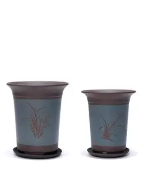 807人付款淘宝宜兴紫砂花盆带托盘精品兰花盆墨兰蕙兰花专用盆圆筒