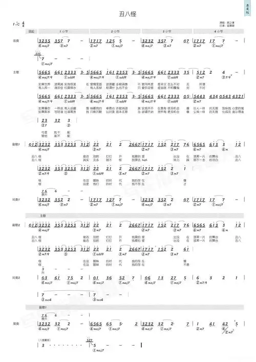 《丑八怪》音乐歌词简谱