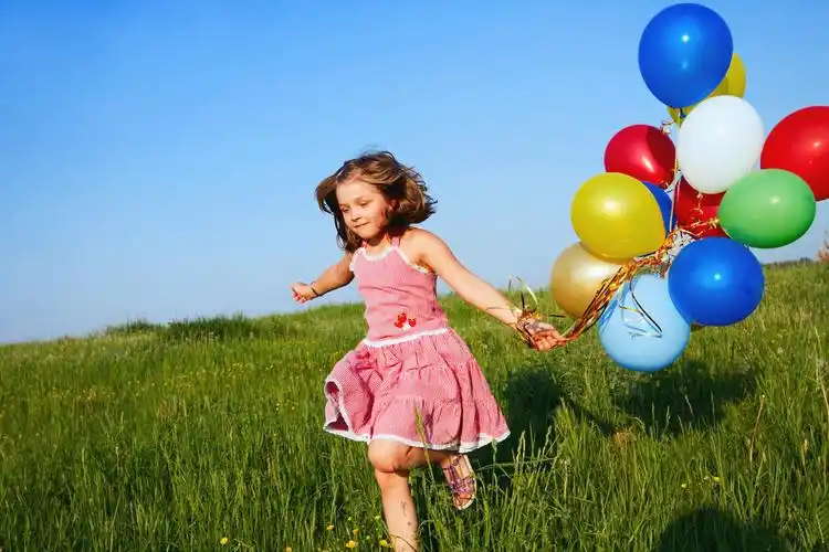 快乐的小女孩拿着气球奔跑幸福的人美好童年六一儿童节61儿童节