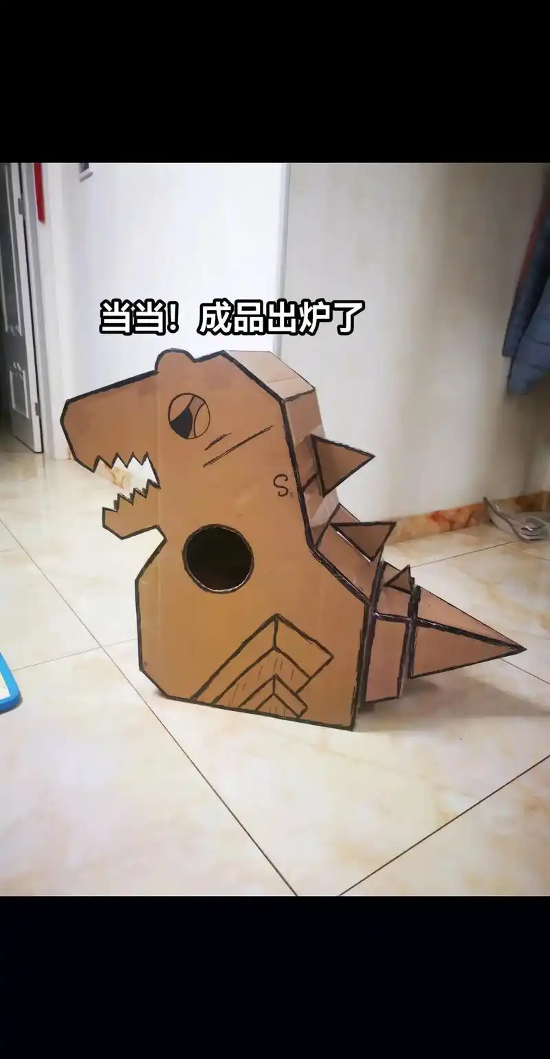 手工纸箱恐龙 #亲子手工制作 #纸箱子房 - 抖音