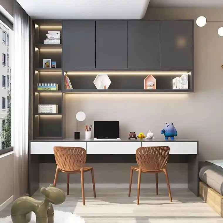 双人书桌书架书柜一体轻奢现代电脑桌卧室儿童书桌大长学习桌定制