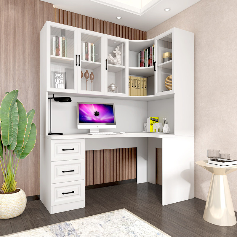 电脑台式桌带衣柜书桌书架一体卓组合家用卧室学生简约现代写字桌
