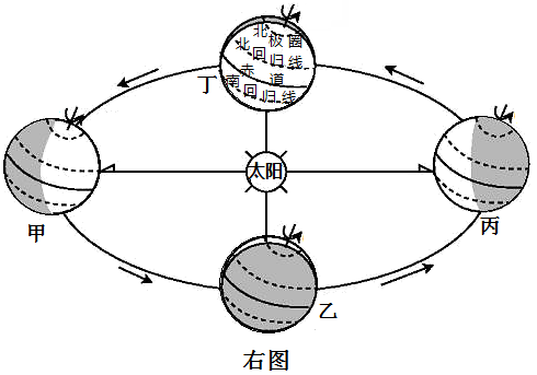 读下面的地球自转图左图和地球公转图右图完成下列问题