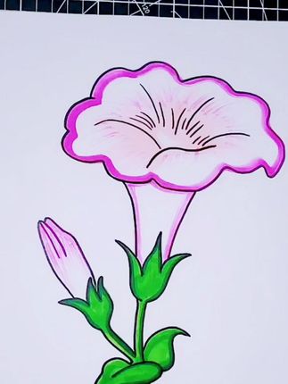 《喇叭花简笔画教程》速度太快可手动翻页呢,快来和柚子老师一起 - 抖