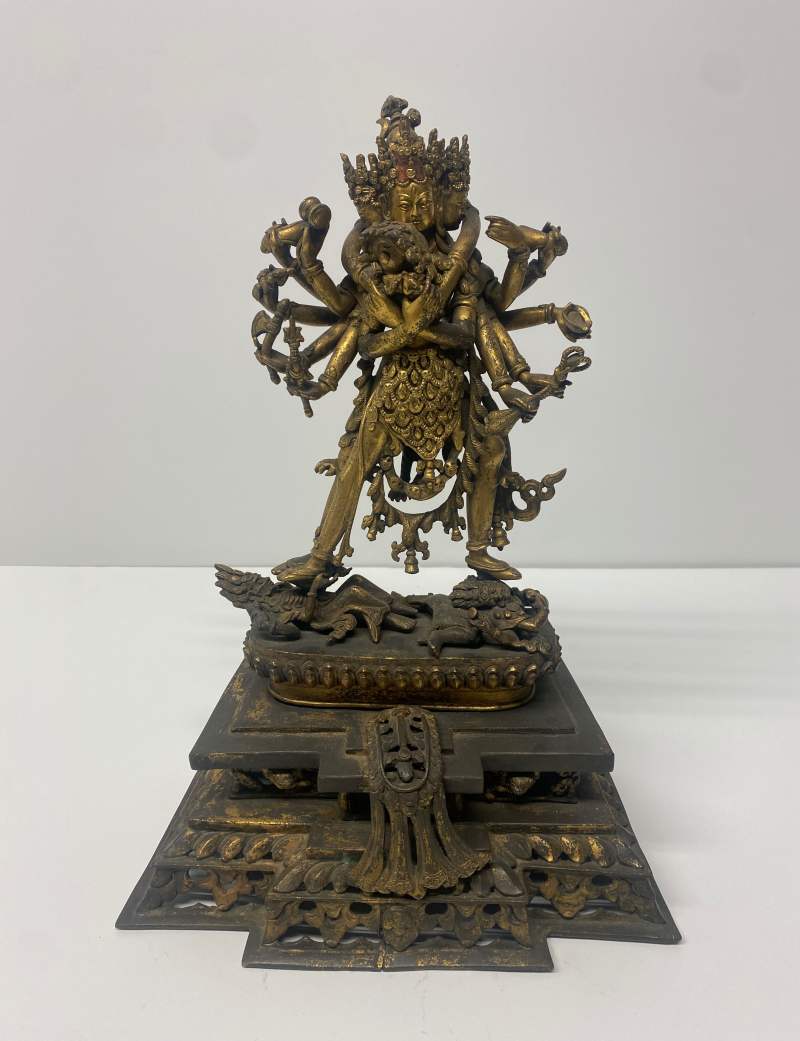 铜彩绘胜乐金刚造像高35x28x12重2980克