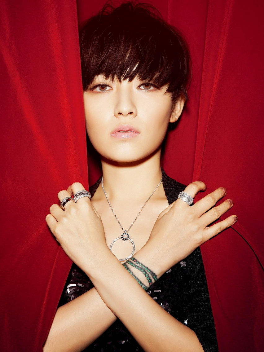 范晓萱拥母拍摇滚写真黑色长发似芭比