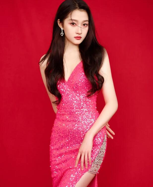 性感撩人的"人间尤物"#关晓彤# 身穿粉色高开叉吊带裙,肤白貌美的容颜