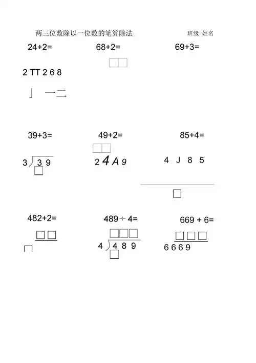 三年级数学 三位数除两位数竖式计算题模板 点击图片长按保存,a4纸
