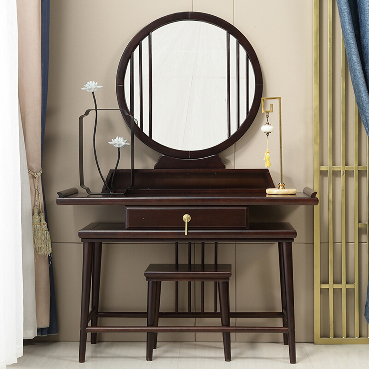 和谐爱巢 新中式橡胶木实木梳妆台实木化妆台卧室梳妆台简约小户型