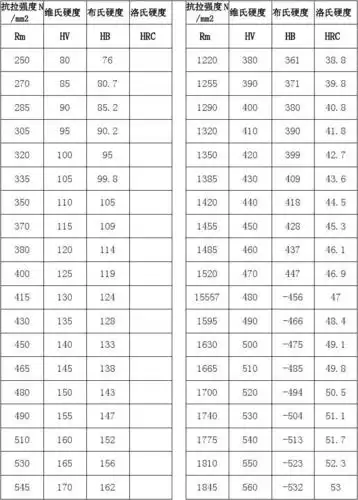 金属材料抗拉强度与硬度对照表