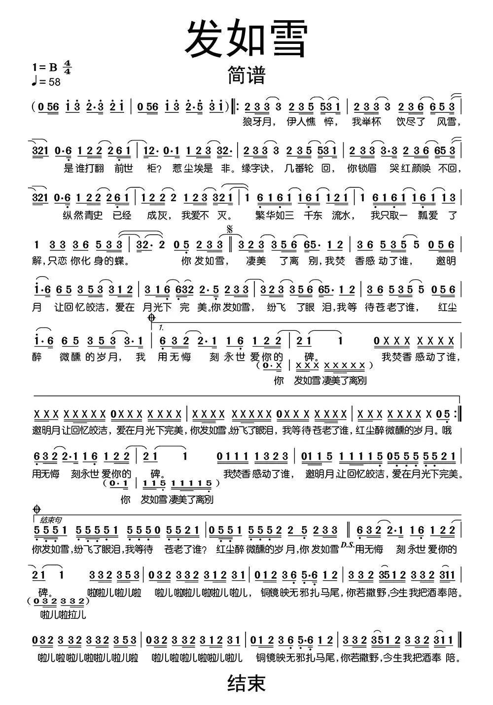 发如雪_歌谱简谱_哆来咪123曲谱网