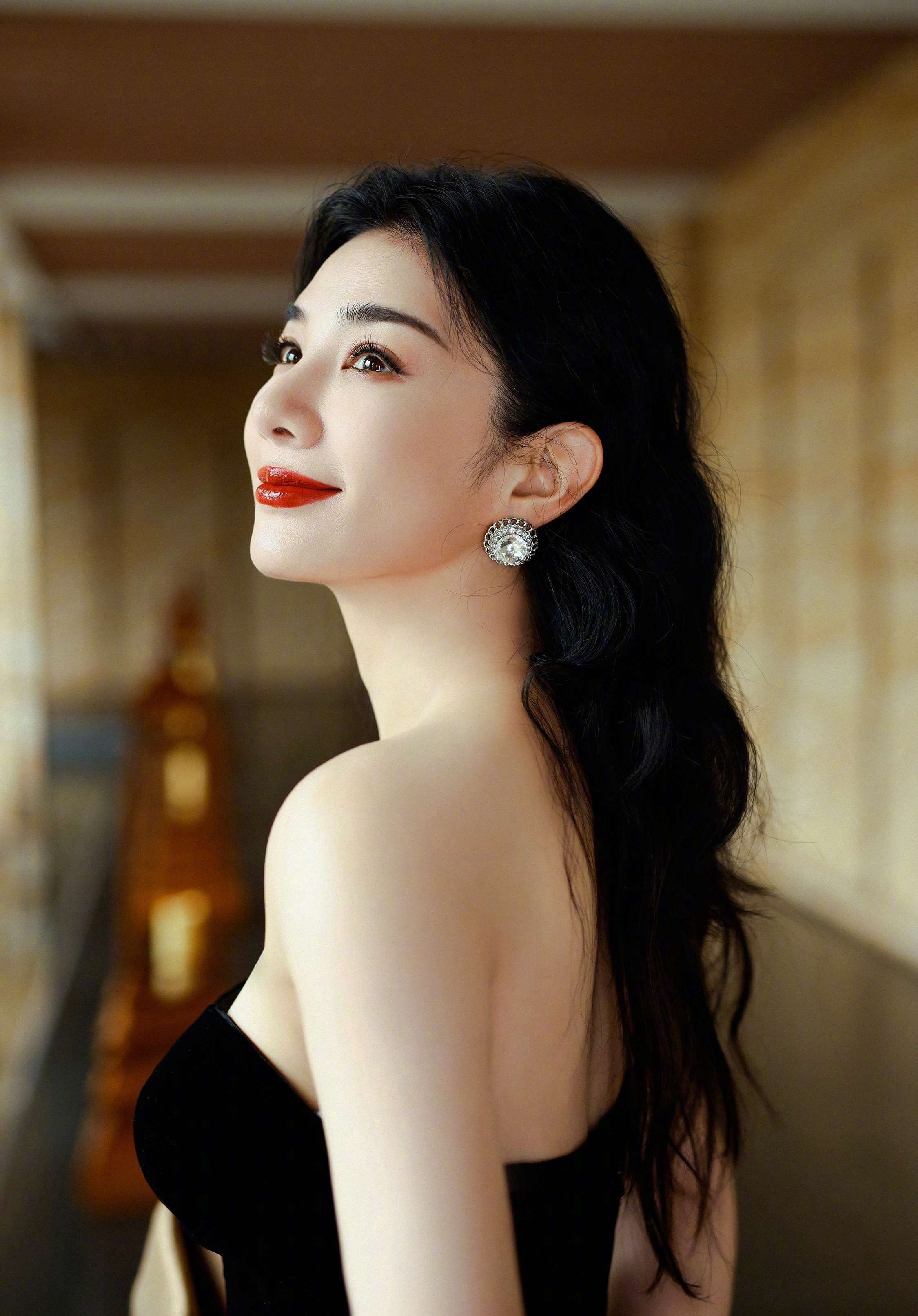 黄奕穿黑裙勾勒曼妙身姿黑发红唇气场全开