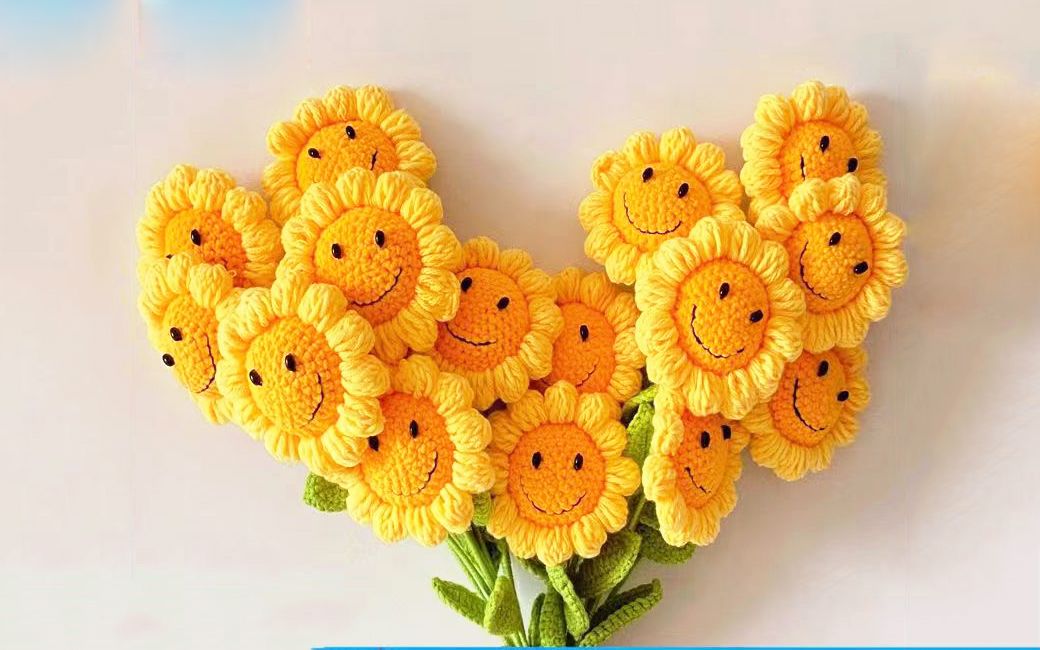 新手教学【笑脸向日葵】笑脸太阳花】毛线钩针教程 新手小白手工钩织