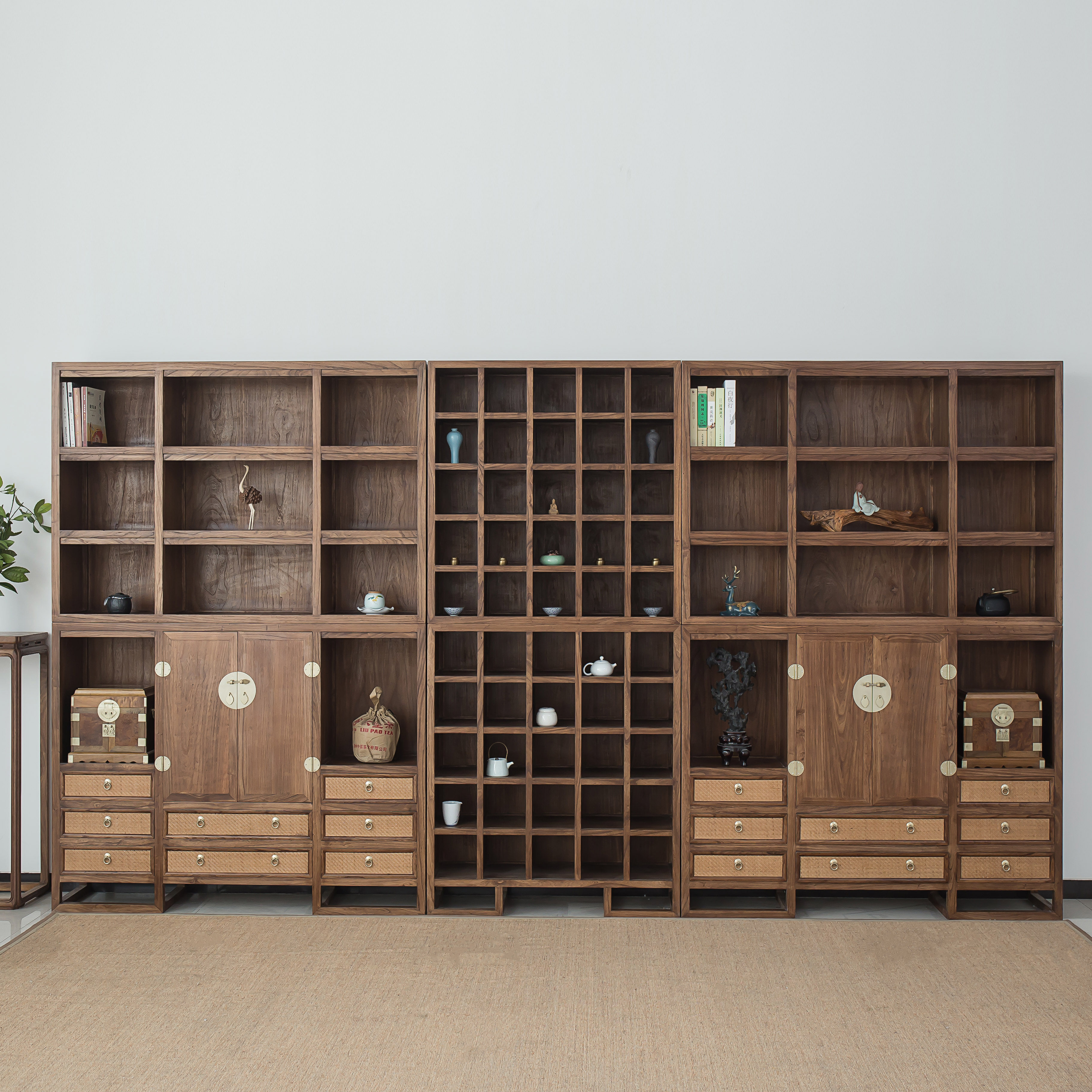 做一个新中式书柜,三个独立的组合成大书柜