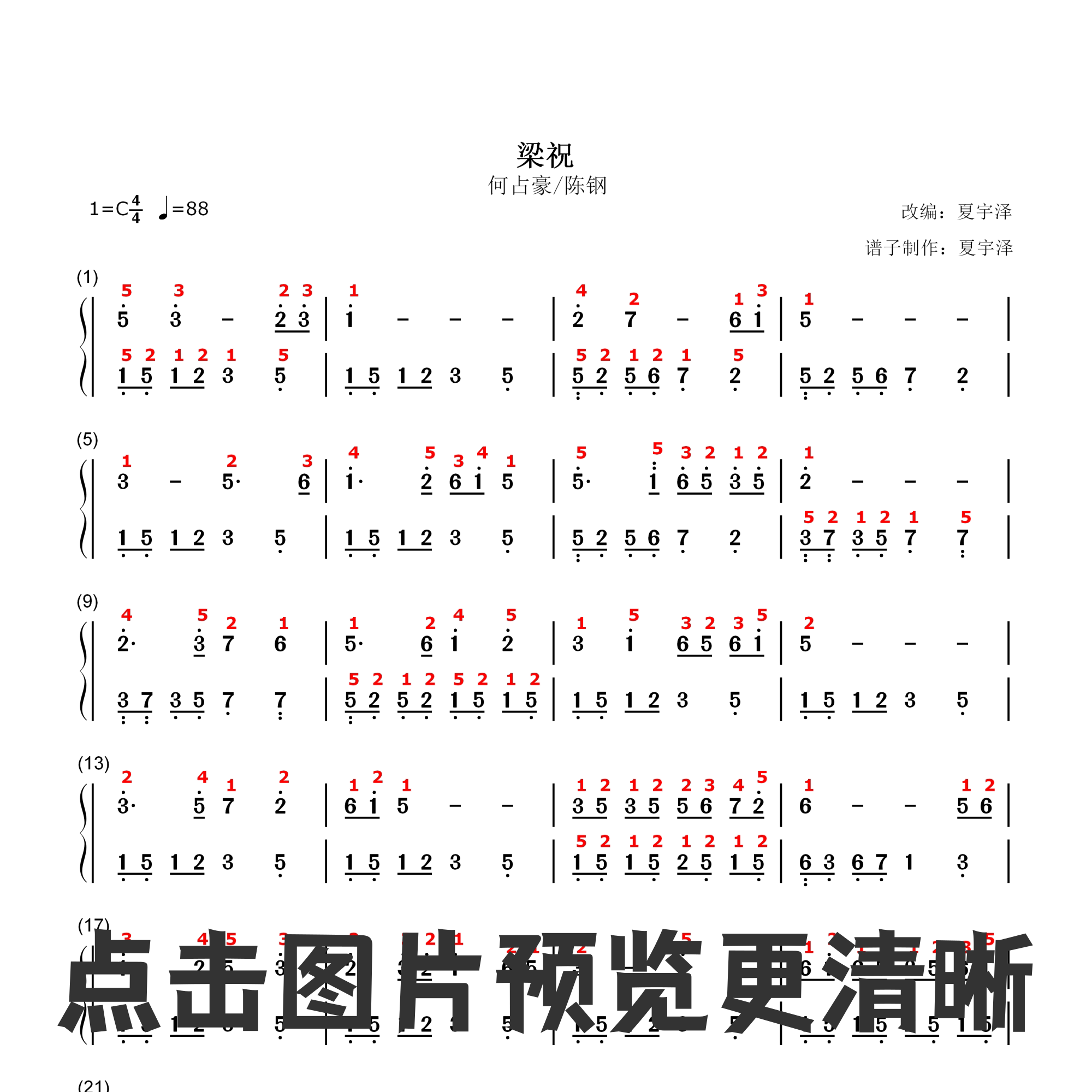梁祝钢琴琴谱双手简谱电子版独奏何占豪陈钢数字乐器软件