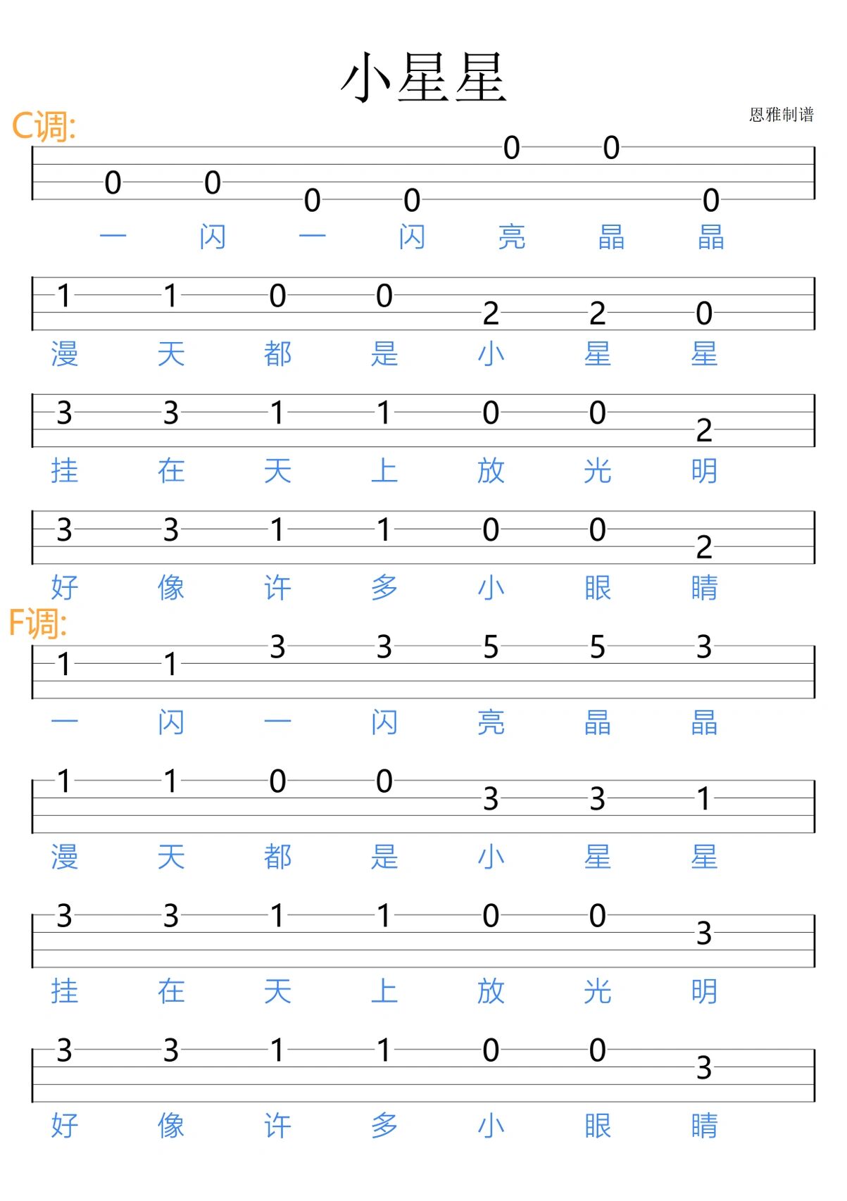 《小星星》/尤克里里新手指弹谱 给新手同学们带来一首超简单的儿歌