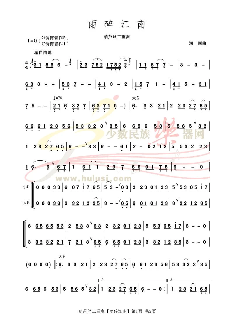 雨碎江南双手简谱预览1