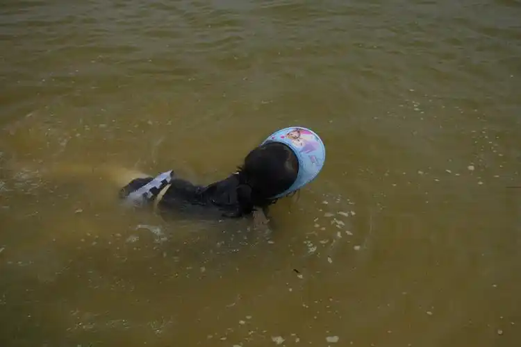农村女孩河边 游泳