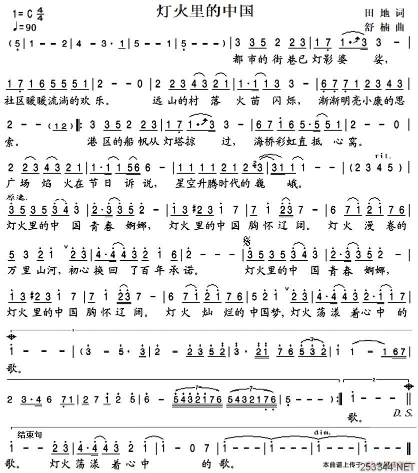 歌曲灯火里的中国的简谱歌谱下载
