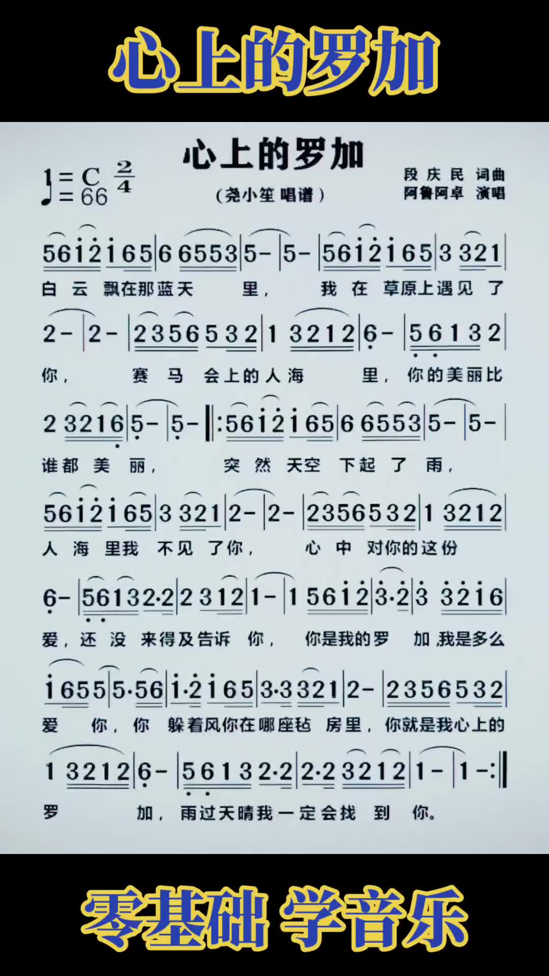 心上的罗加唱谱零基础学音乐音乐分享音乐推荐简谱教唱简谱教学经