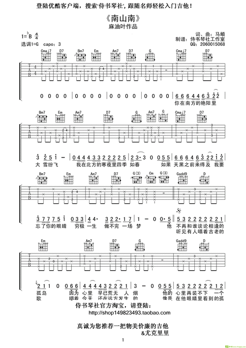 《南山南》超简单吉他谱 专为吉他初学者精心打造,《南山南》的超简易