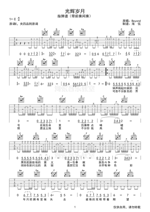 光辉岁月吉他谱_beyond_c调弹唱六线谱_生产队上传