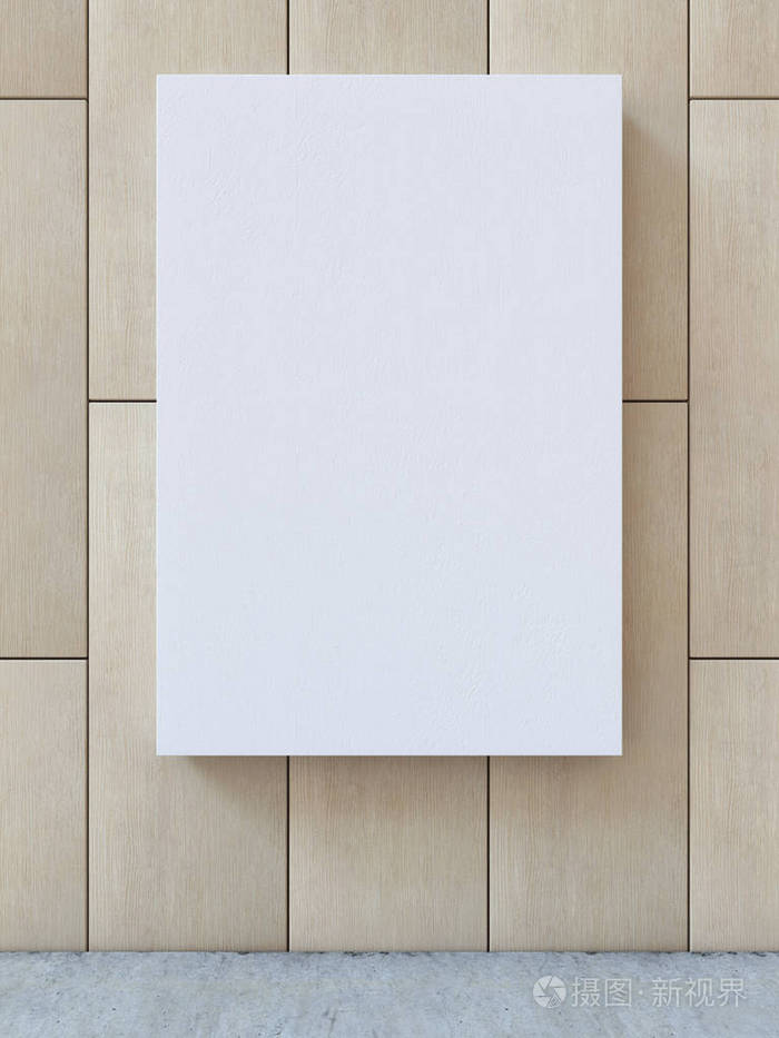 白色的空白画布,实木拼花墙与混凝土楼板背景上.3d 渲染