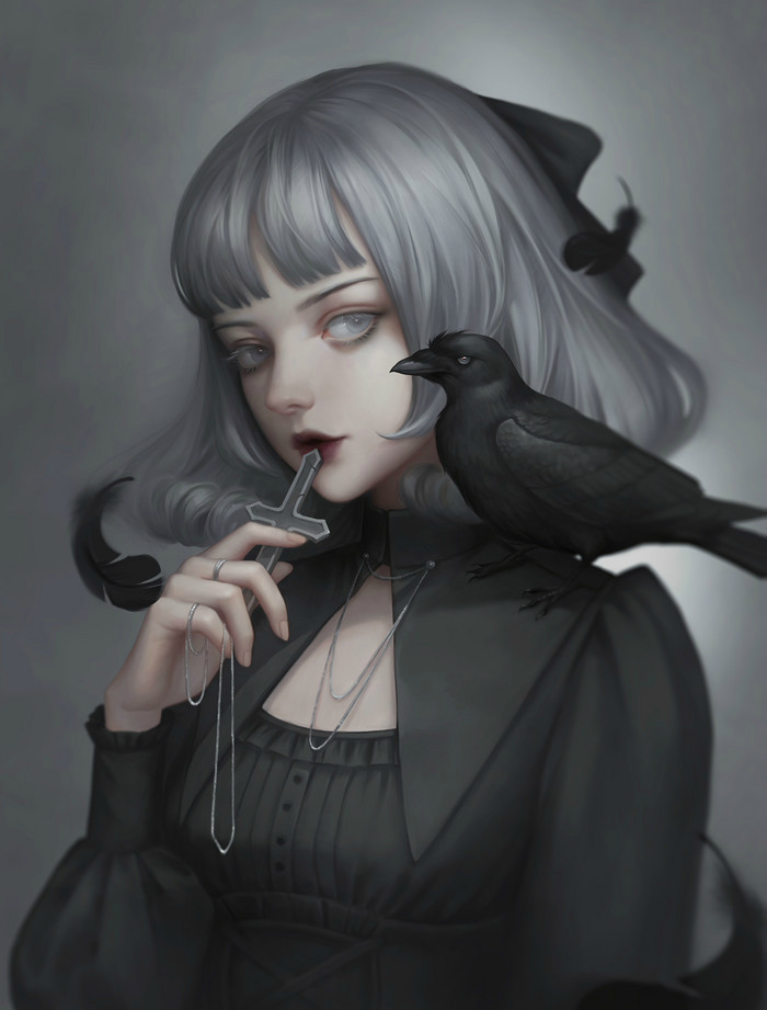 黑暗系二次元人物插画,画师likesac作品