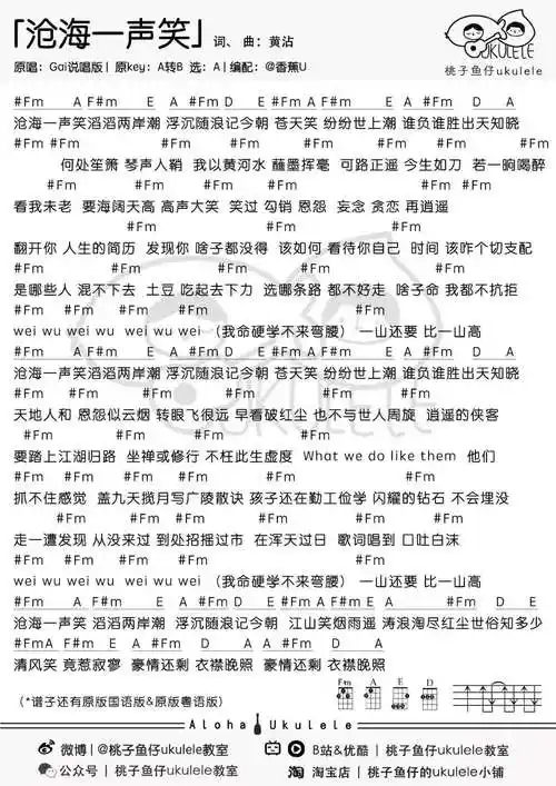 gai《沧海一声笑》尤克里里谱-ukulele music score