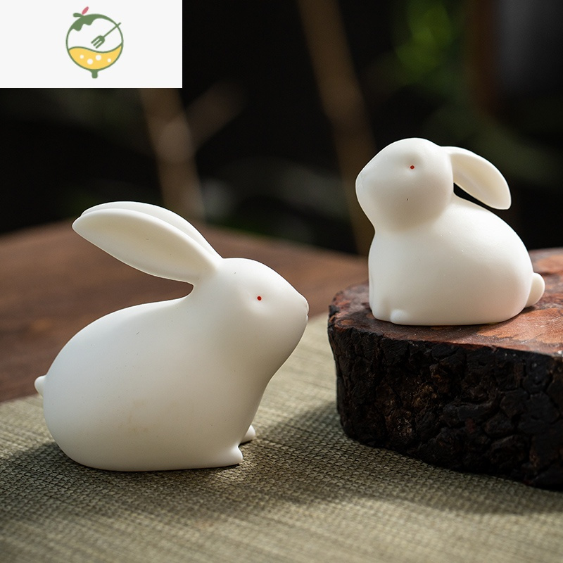 yicheng陶瓷兔子小摆件创意可爱陶艺动物家居客厅办公室生日礼物装饰