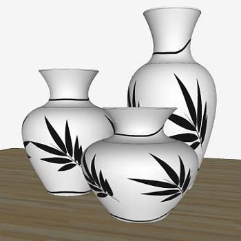 现代印花白色陶瓷花瓶三件套su模型下载_sketchup草图.