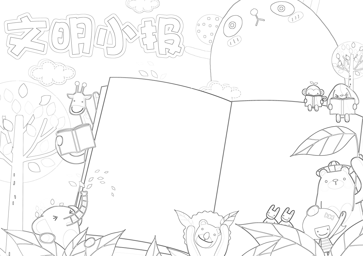 小学生手抄报高清无水印线稿模板,可打印现用(文明小报篇)